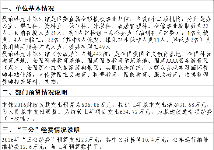 江津区聂荣臻元帅陈列馆2016年部门预算情况说明