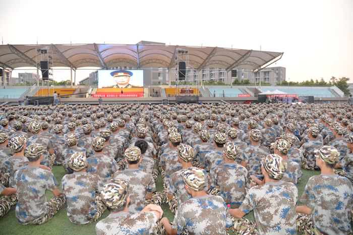 正值盛夏,当日气温39℃,学校田径场的地面经过一天的暴晒还涌动着阵阵热浪,但酷暑丝毫没有影响同学们听报告会的热情。5000余名大一军训学生席地而坐专注聆听,虽然同学们个个汗流浃背,但随着报告团成员的精彩讲述,会场上不时响起此起彼伏的掌声。这是聂帅精神巡展巡讲活动连续第四年走进重庆交大双福校区。