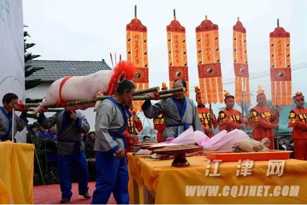 “杀年猪祭祀”演职人员准备就绪。“年猪祭祀”是巴渝地区古老的风俗习惯。以舞台演出的方式,将祭祀典礼展现给观众。